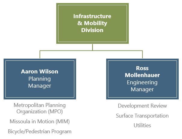 The Planning & Engineering Division is composed of the engineering personnel and functions from the Water, Wastewater, and Stormwater utilities and the Transportation Planning and Engineering sections. This structure streamlines processes by aligning transportation functions with the Department's engineering components to improve efficiency, productivity, and communication.